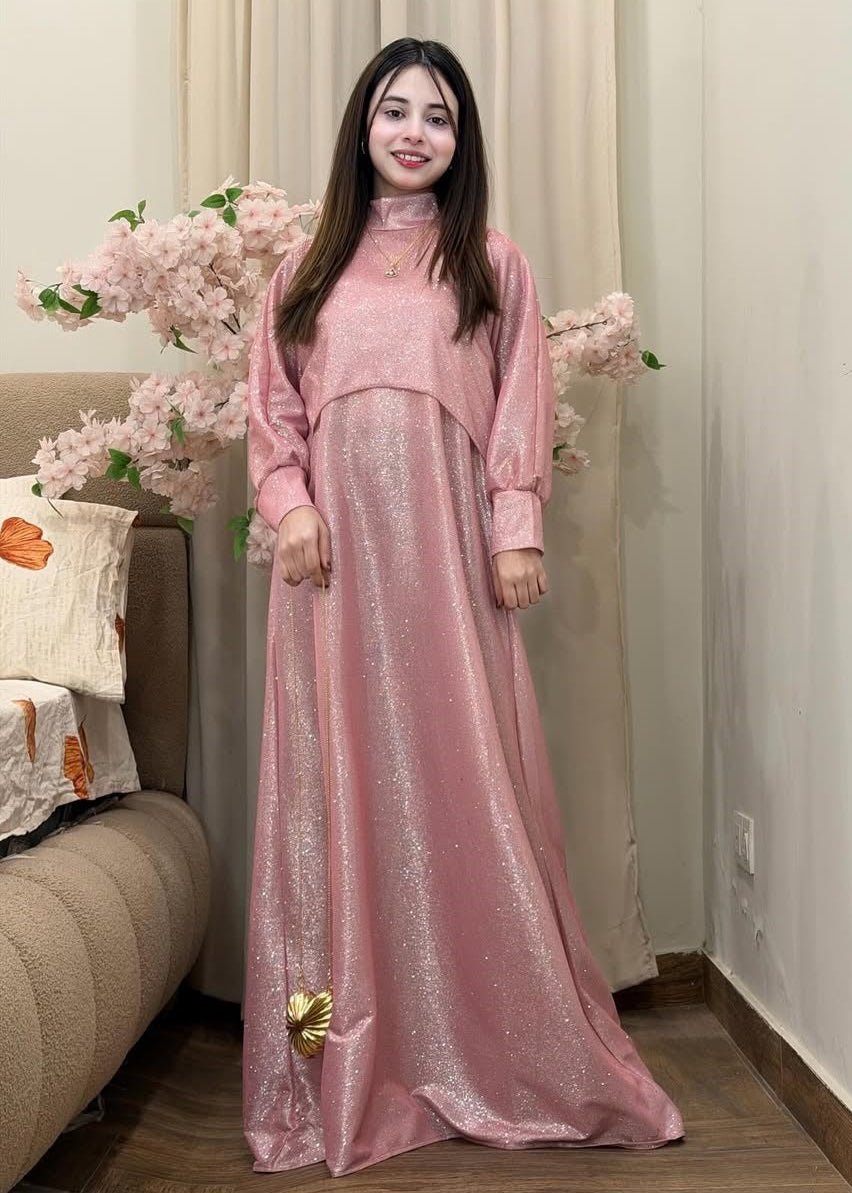 Crafted for the most special of evenings, this premium two piece ensemble is designed to make an unforgettable impression. The set features a striking cropped cape made from exclusive imported China Moonlight Glitter fabric, known for its brilliant, multi dimensional shimmer that sparkles under any light.