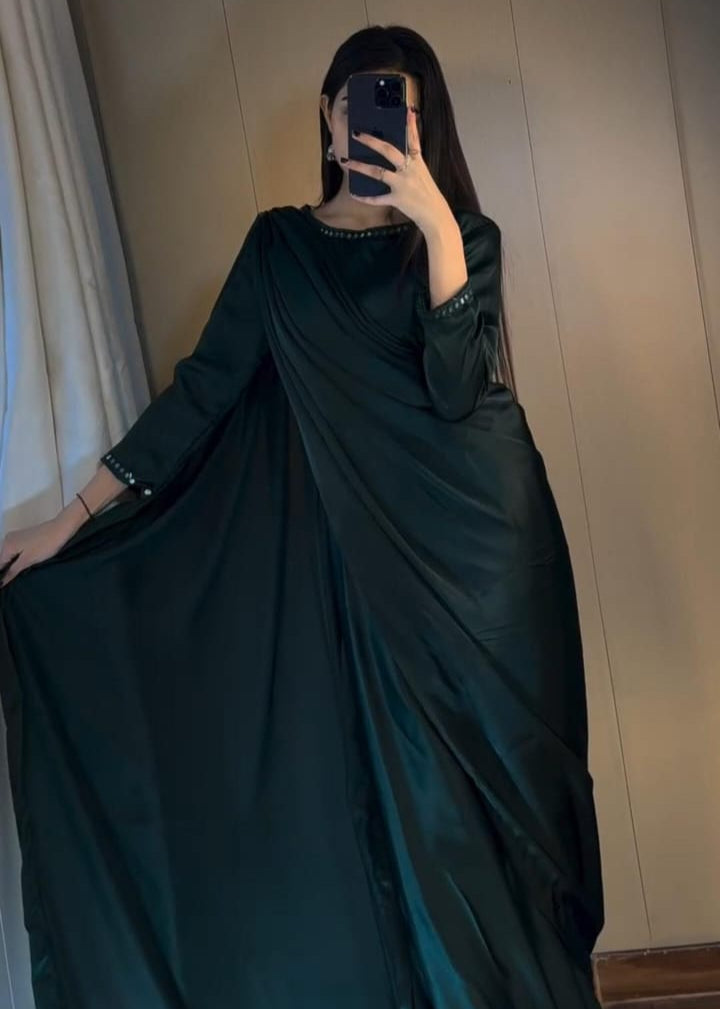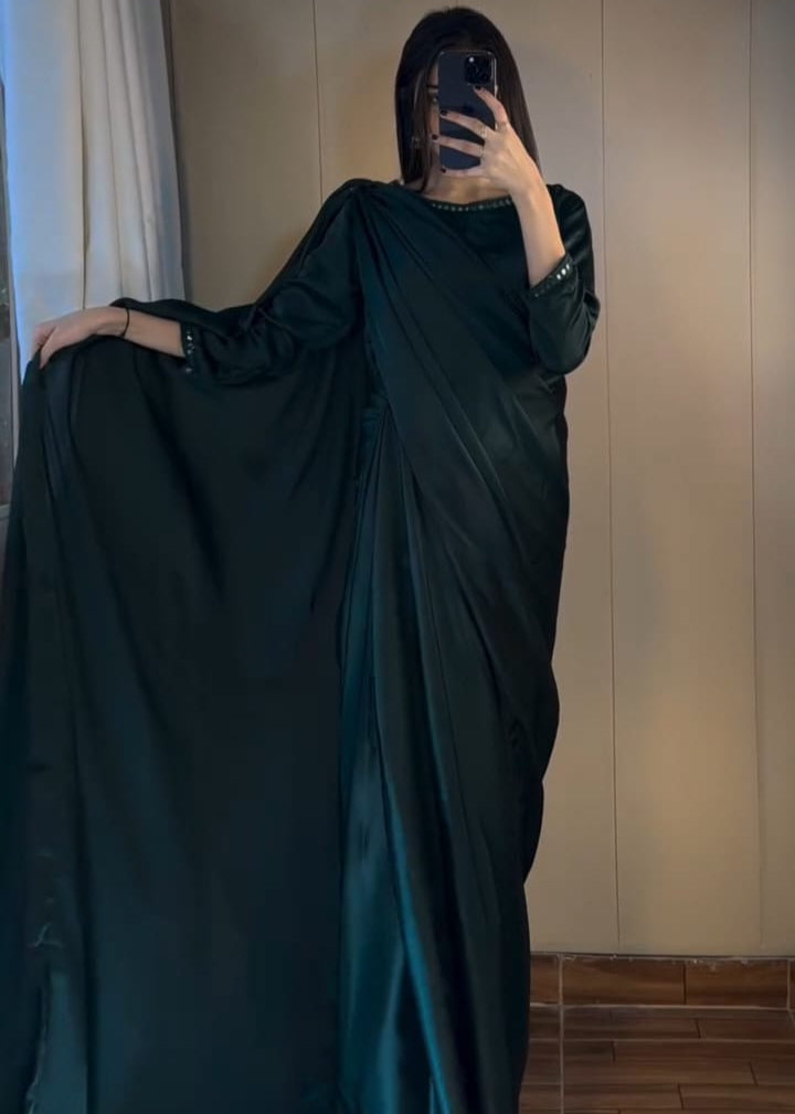 Experience timeless charm with the Mirror Work Silk Saree. Made from premium Shamoze silk, this stitched saree combines elegance with comfort. The detailed mirror work adds a graceful shine, making it perfect for festive events, parties, and formal gatherings. Comes with a matching peticoat for a complete look.