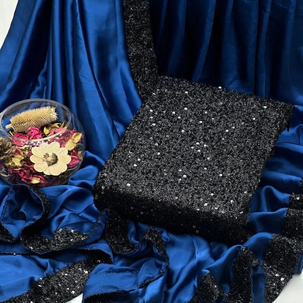 Drape yourself in timeless beauty with our Shamoz Silk Unstitched Saree a blank canvas designed for the woman who loves to personalize her style. Crafted from luxuriously soft Shamoz silk, this classic 6-yard ensemble features a sparkling sequin border that adds a touch of regal shimmer to every fold.