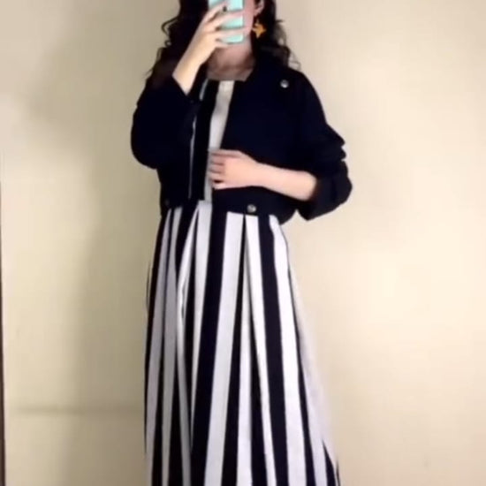 Make a bold statement with the Savanna Chic Set, a striking two-piece ensemble that merges playful prints with comfortable, quality fabrics. This set features a vibrant, full-length Zebra Printed Frock paired perfectly with a solid, soft cotton Coati (Jacket).